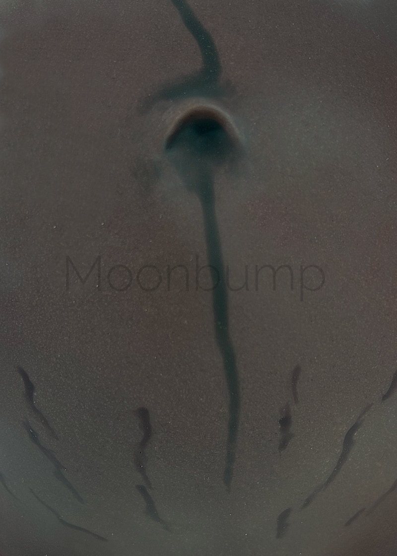 • . Original Moonbump® fake maternity belly in size 7-8 months (31 to 38 weeks, 3rd trimester) and silicone colour M10 (black coffee). Customisable with a choice of hand-painted linea nigra (pregnancy line), stretch marks and colour matching.