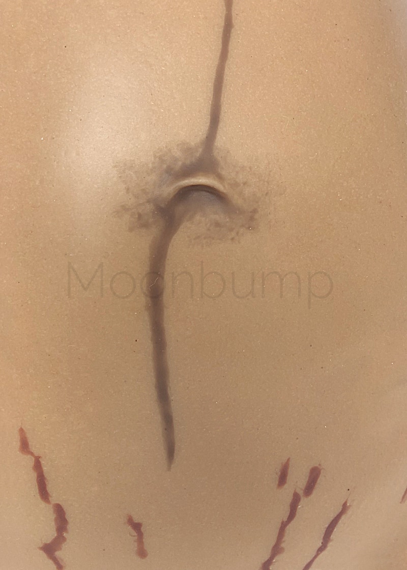 Optional linea nigra (pregnancy line) and stretch marks detailing provided by our expert special effects technicians in-studio. Alternatively, powder, make-up and airbrushing can also be safely and effectively applied to the surface. We can customise the skin detailing to your requirements with wider/thinner or lighter/darker stretch marks or linea nigras, or even bespoke moles, freckles or veins (please note, veins are usually more visible on lighter skin tones).