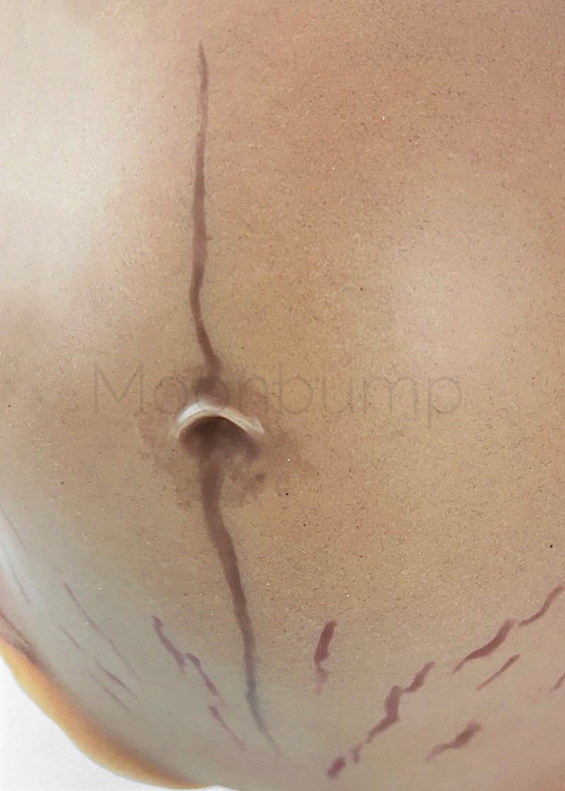 • Optional linea nigra (pregnancy line) and stretch marks detailing provided by our expert special effects technicians in-studio. Alternatively, powder, make-up and airbrushing can also be safely and effectively applied to the surface. We can customise the skin detailing to your requirements with wider/thinner or lighter/darker stretch marks or linea nigras, or even bespoke moles, freckles or veins (please note, veins are usually more visible on lighter skin tones).